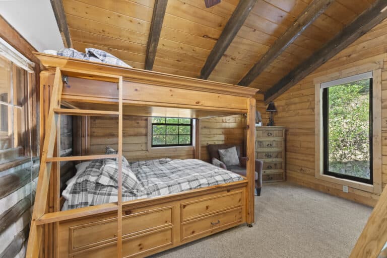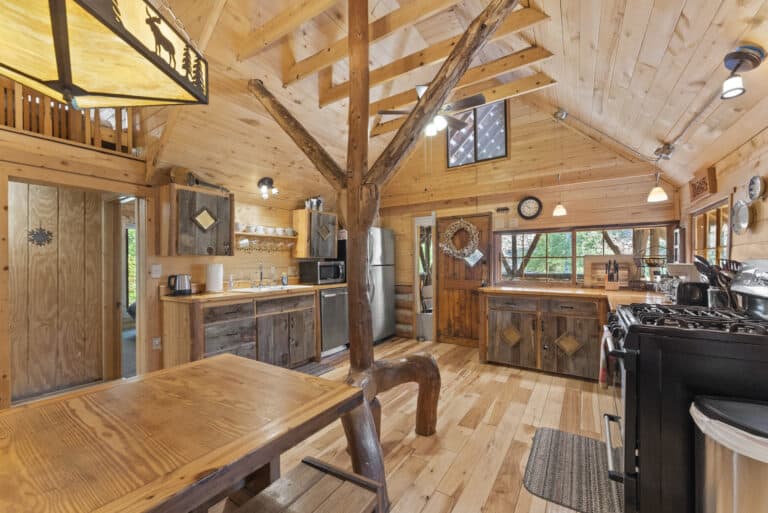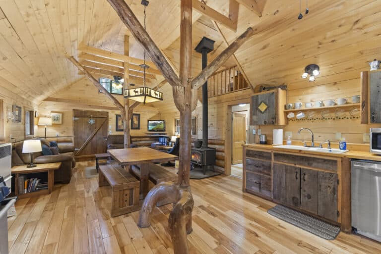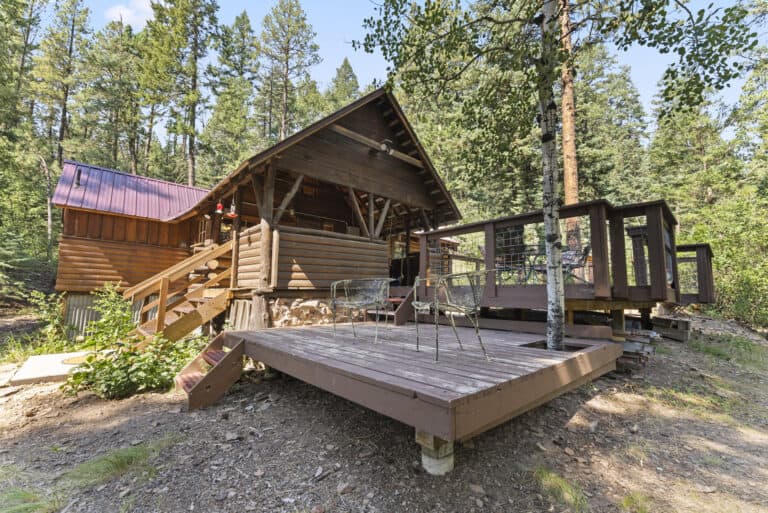Inside? It’s cozy x3. Think warm wood floors, rich wood ceilings, and a layout that practically begs for flannel and whiskey. Step outside and boom: trees, silence, and a front-row seat to the San Juan Mountains doing their dramatic thing.